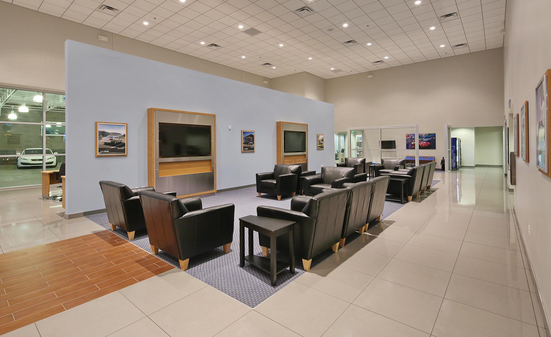 Earnhardt Hyundai is a 40,050 SF full-service auto dealership at the corner of Frank Lloyd Wright and North sight Blvd, just east of the Scottsdale Airport. The facility, a significant upgrade from their previous Hayden Rd. location, includes increased showroom space as well as a full-service shop, detail bays and an automatic car wash. Buildings are composed on CMU and structural steel with an energy efficient glass curtain wall along the showroom parameter. Flooring for this project includes mixed mediums across the showroom and into the service bays. The Earnhardt family of auto centers owns and operates over 26 dealerships in the Phoenix metropolitan area alone. John Mahoney Architects has been the chosen design team on a total of 28 auto dealership projects in Arizona. This project was brought to substantial completion in a 6-month time span.