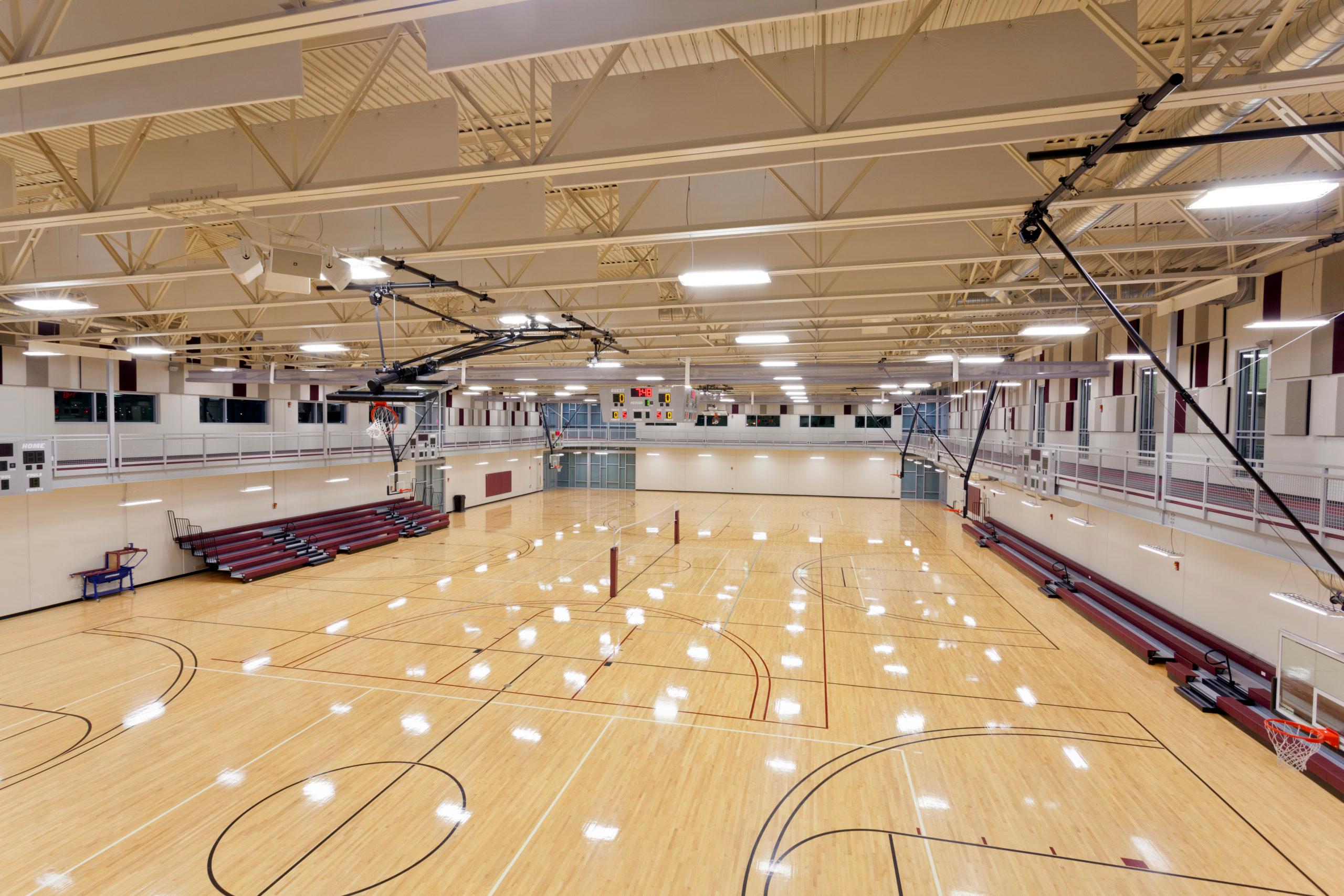 This amazing facility includes a cardio theater, free weights, a 36-foot-tall climbing wall, racquetball and smashball courts, classrooms for fitness programs, basketball courts, swimming pools, and more. All exercise areas have top-of-the-line equipment. Other amenities included are a full juice bar, child care areas, hot tubs, first aid stations, and office areas for staff.