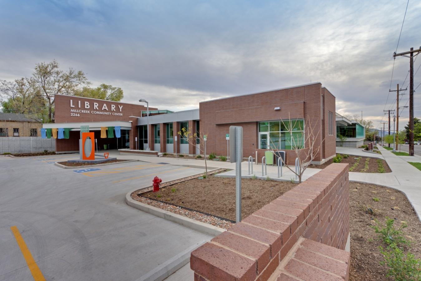 The Millcreek Community Center is a new facility that replaced several aging buildings that housed the senior center and library and combined them into a single building on an existing site. The Center includes active and passive recreational environments with carefully planned adjacencies, acoustics, and functionality to create an efficient, flexible, multipurpose complex. The recreation center includes a gymnasium, volleyball courts, a fitness room with exercise machines and free weights, group fitness room, and fully equipped locker rooms. The scope included an outdoor park with soccer fields, playgrounds, pavilions, and walking trails. The project is LEED Gold certified with numerous sustainable elements including low-flow plumbing fixtures, low SRI roof, solar panels, construction waste management, recycled and low-VOC emitting materials, and gymnasium floor panels from the original Center repurposed as an art installation throughout the new lobby.