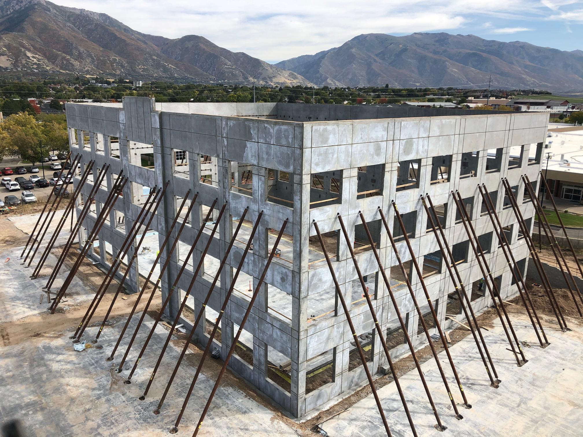 The Ogden Plaza Medical Office Building is a 4-story tilt-up concrete building strategically positioned adjacent to the operational hospital and emergency heliport. With tilt-up concrete wall panels reaching a maximum height of 72 feet, this modern facility is situated within a mere 45 feet of the existing hospital. The MOB houses dedicated space for medical services, including Cardiac Services, CV Spine, and NUCA. A well-designed connector bridge integrates the medical office building with the existing hospital.