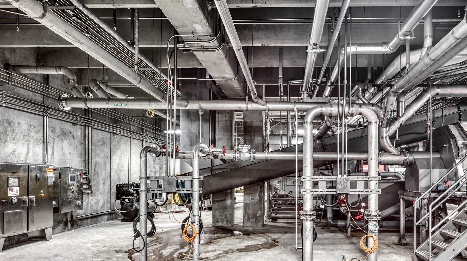 The plant utilizes a covered anaerobic lagoon to capture and pre-treat animal waste, a small wastewater treatment building to finish the process, and an on-site biogas and reuse building that transforms processed waste into solid fuel to heat the building.