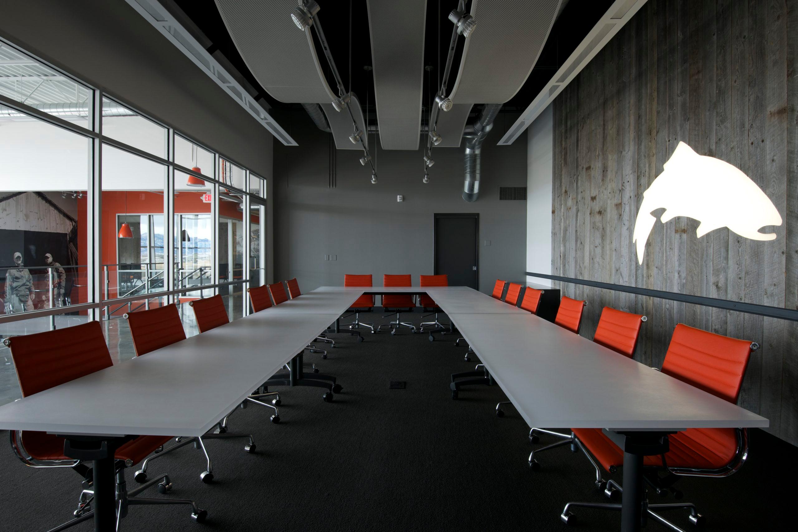 Simms Fishing Products is a company that develops the world’s premier technical fishing apparel, footwear, and equipment. When the company relocated its headquarters in Bozeman, Montana in 2012, it engaged JLF Architects and Big-D Construction to design and build a facility that would speak to the company’s brand as the “icon” in the fishing industry. Simms encourages its customer base to visit their headquarters, so incorporating a brand narrative into the design was essential.