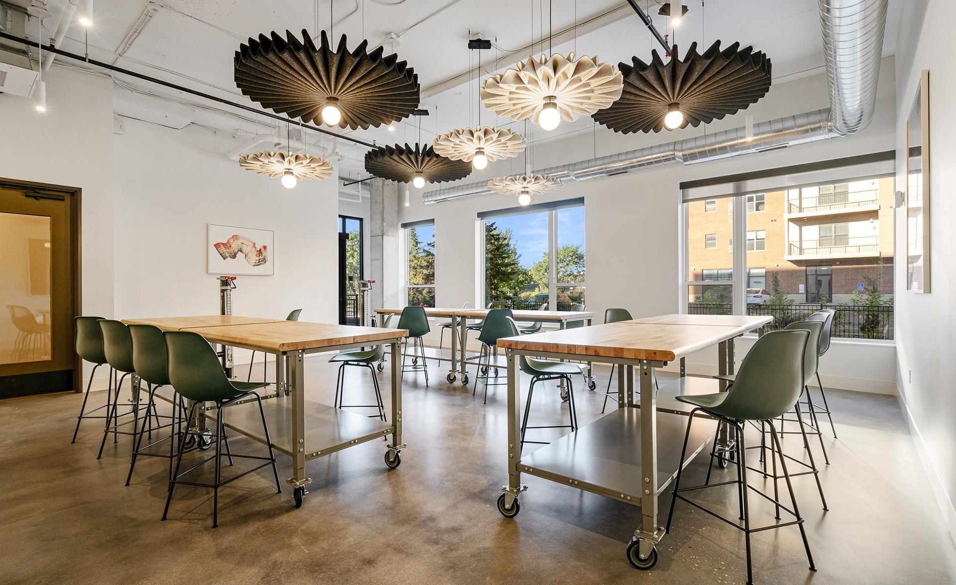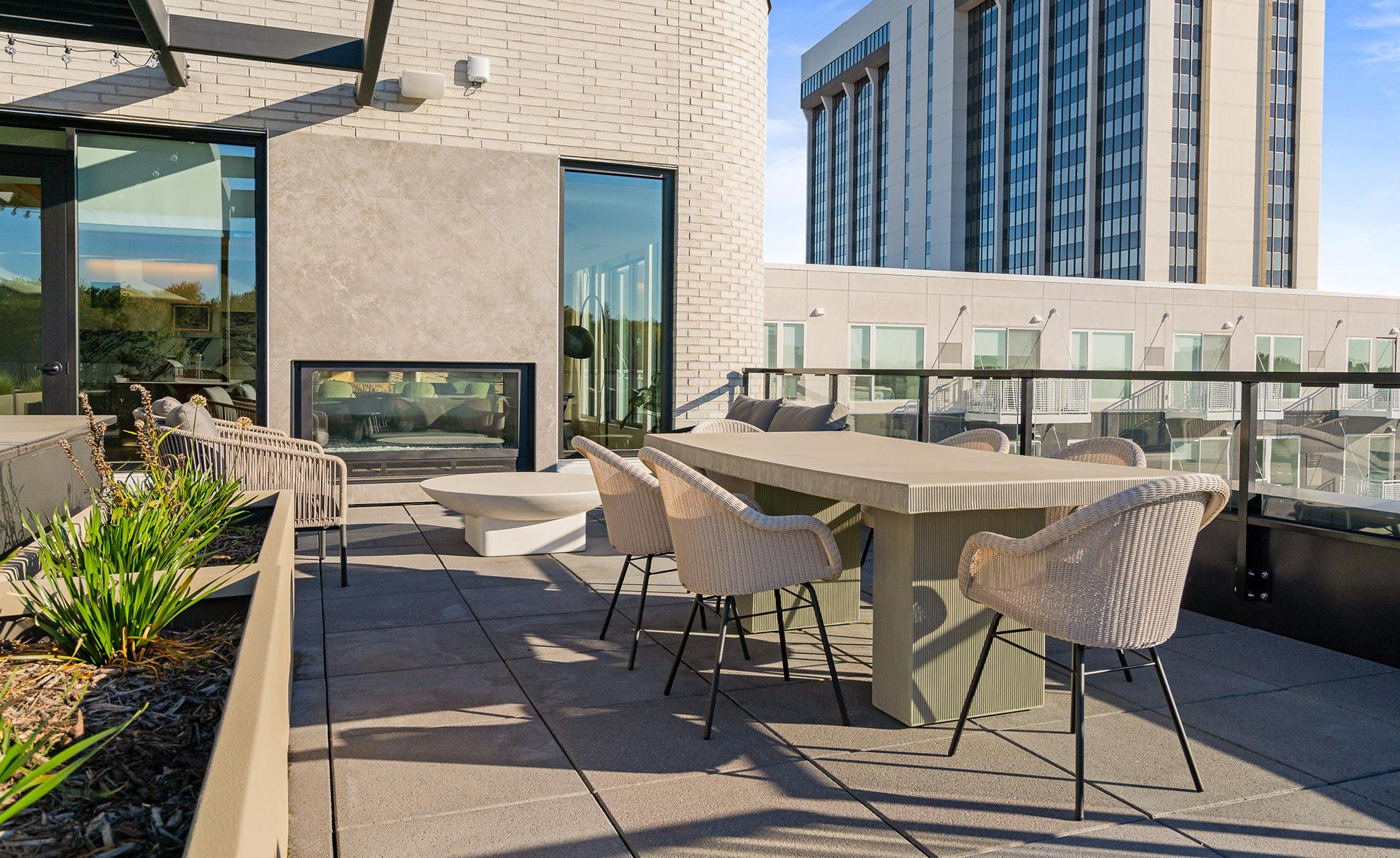 The building structure is two stories of post-tension concrete with five stories of wood framing. The Mera comprises a mix of 233 units ranging from studios, one-bedroom, two-bedroom, and three-bedroom units. It features a two-level residential parking garage with 327 parking spaces. Construction of resident amenities features a level 6 private dining room with an outdoor lounge looking out at the Minneapolis skyline. The list of amenities available to the residents is extensive, including a movie theatre, podcasting studios, pet spa and lounge, work-from-home stations, fitness center, yoga room, golf simulator, wine tasting room, co-working spaces, bike storage, and a maker’s space. Exterior elements include the construction of a pickleball court, an outdoor community deck with fire pits, grill stations, and a pizza oven, as well as a great space for residents’ pets to run free.