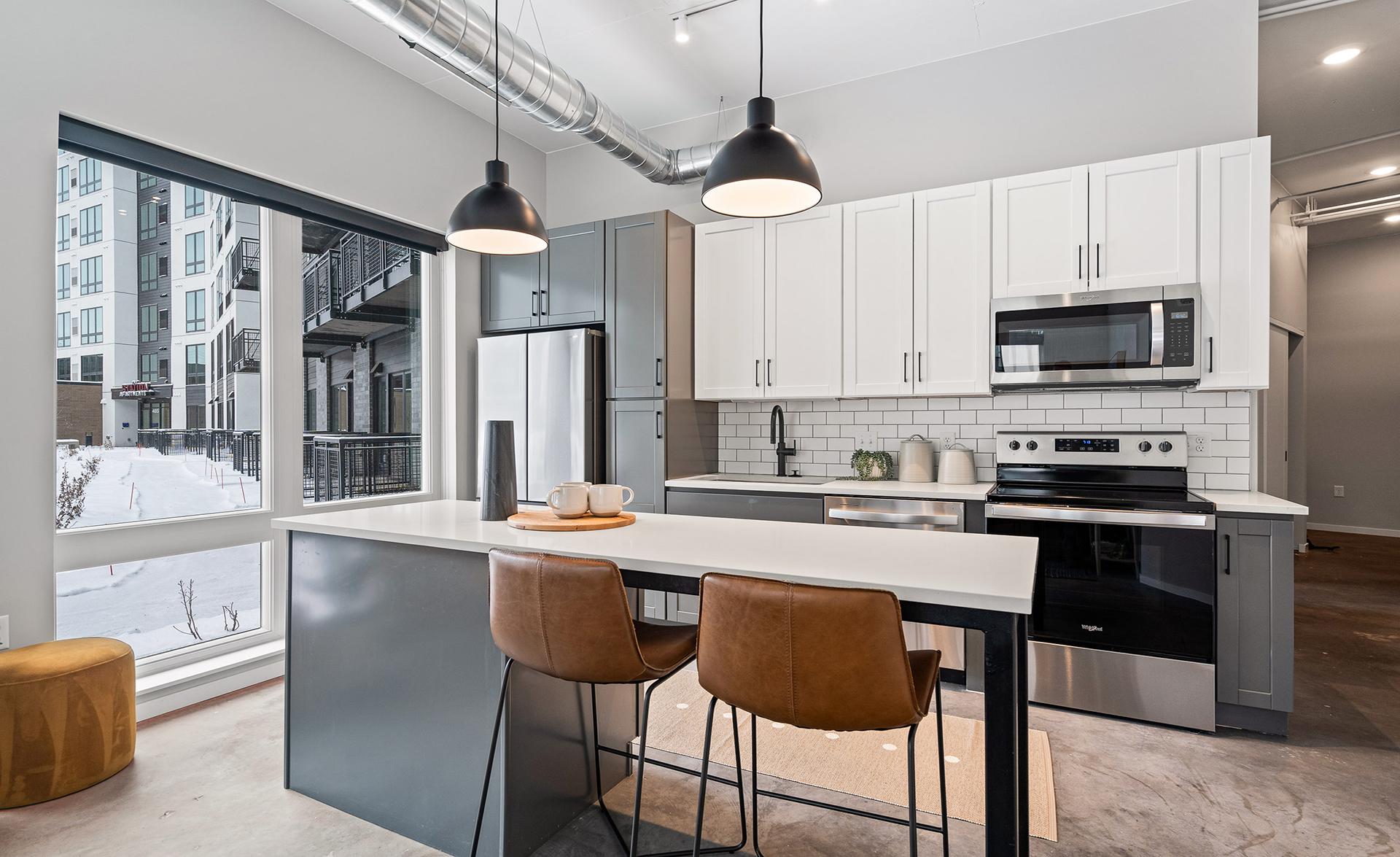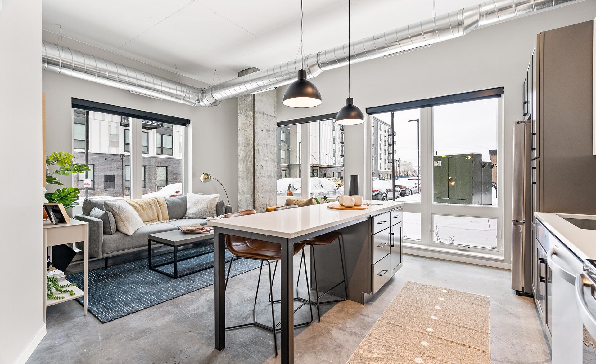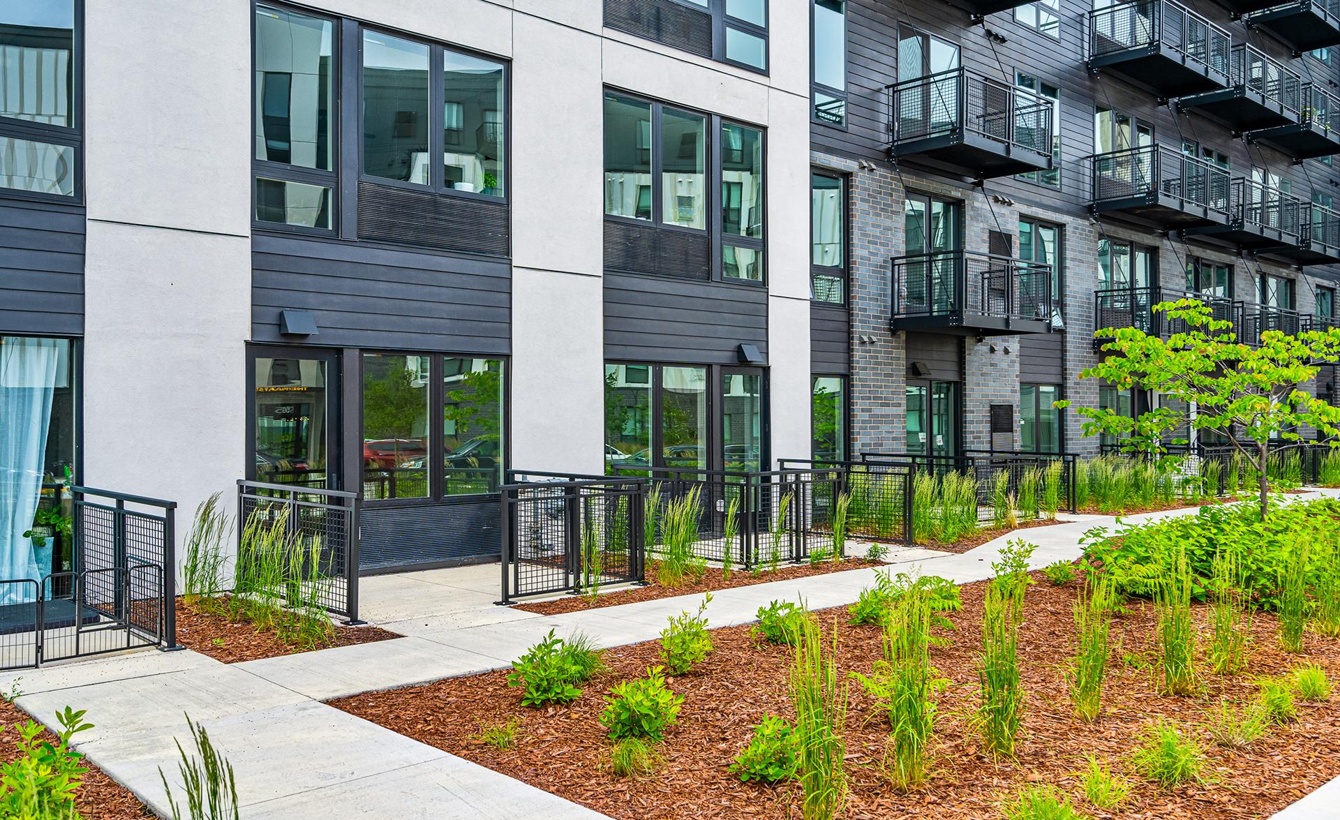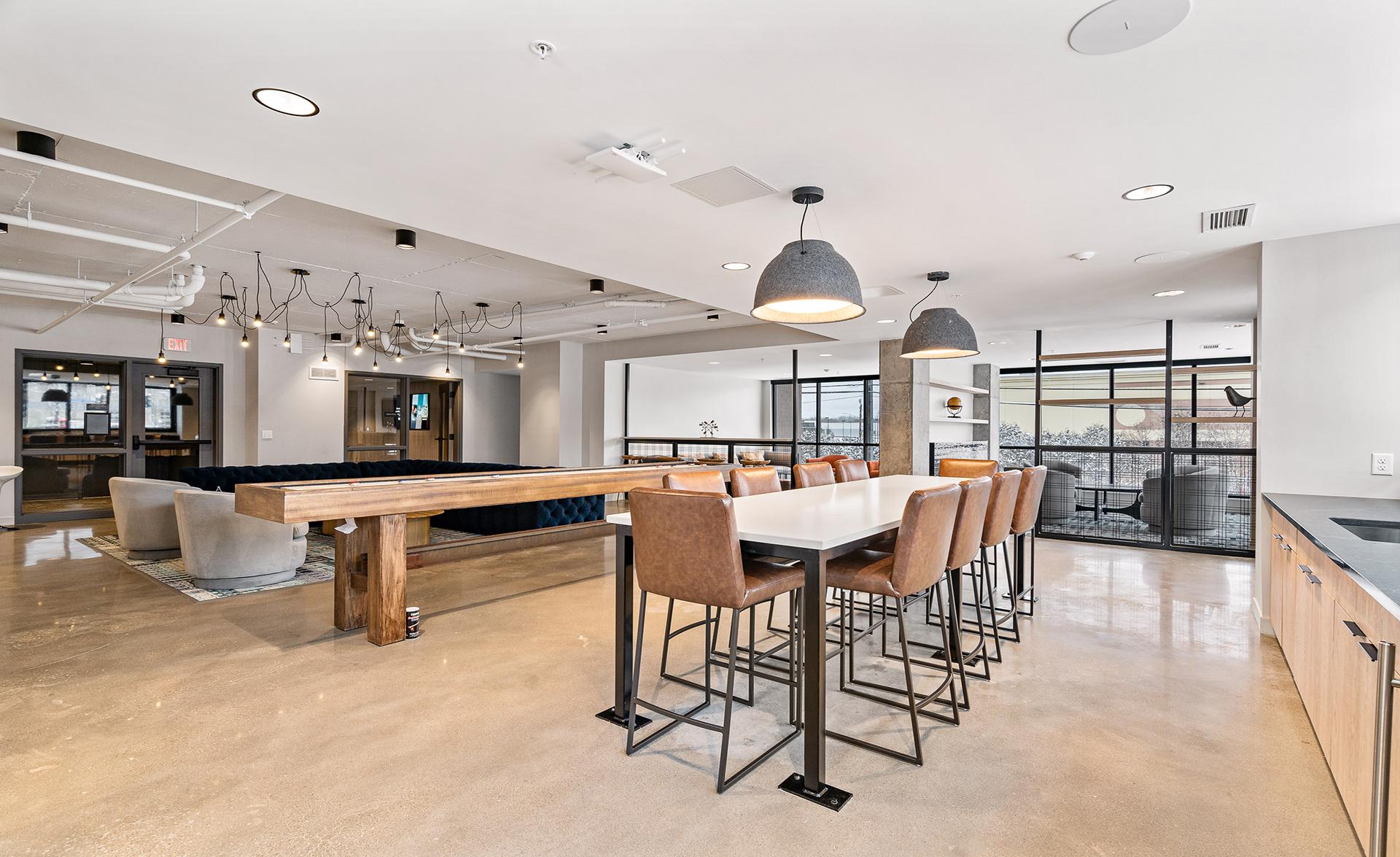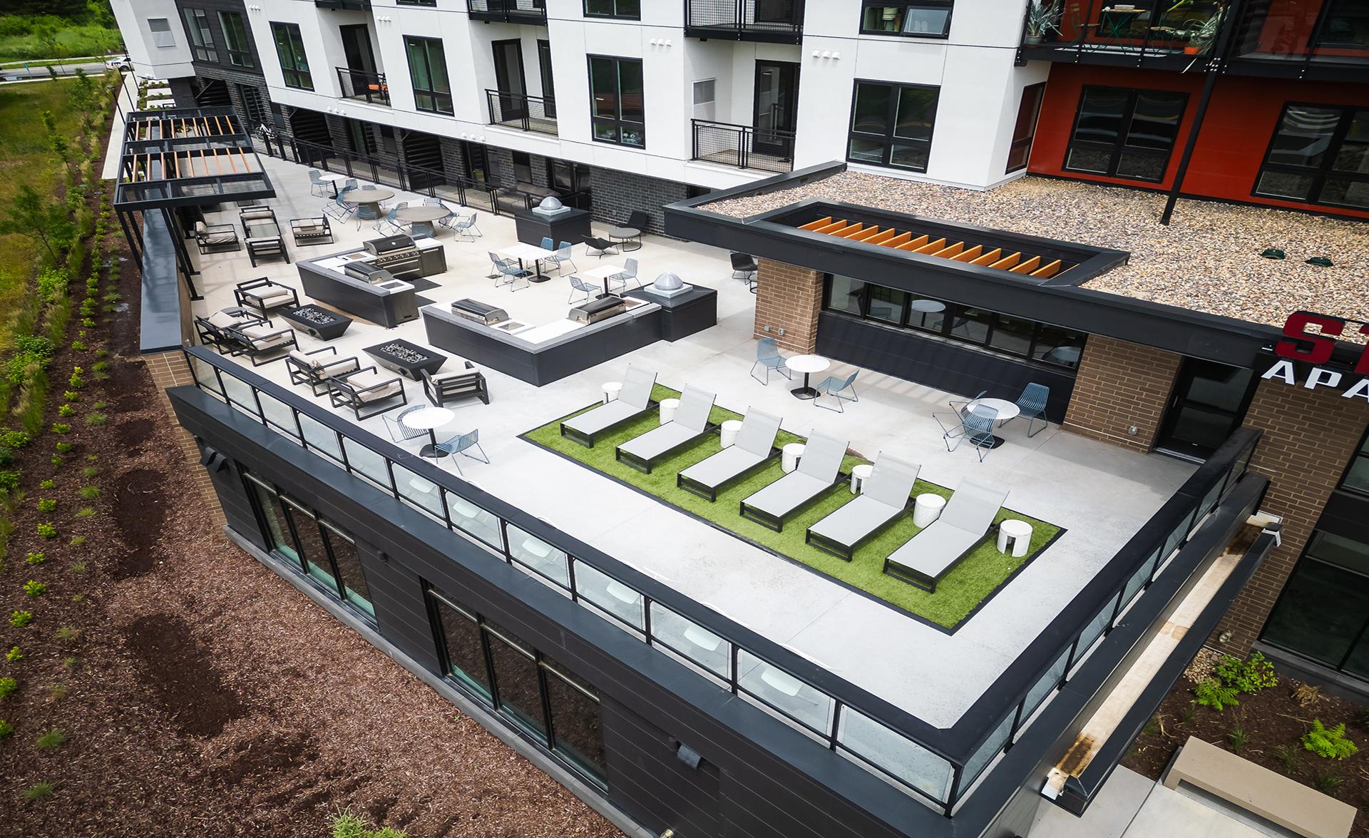 The Station at Malcolm Yards is a new, modern multi-family housing complex in Minneapolis. The project consisted of five levels of wood framing atop four levels of post tension concrete, with two of the concrete levels serving as an underground parking structure. There are 210 units ranging from studios to 2-bedroom apartments, all featuring sleek, black finishes and stainless-steel appliances. Resident amenities include a sky deck, fitness center, game room, pet spa, coworking space, and club room.