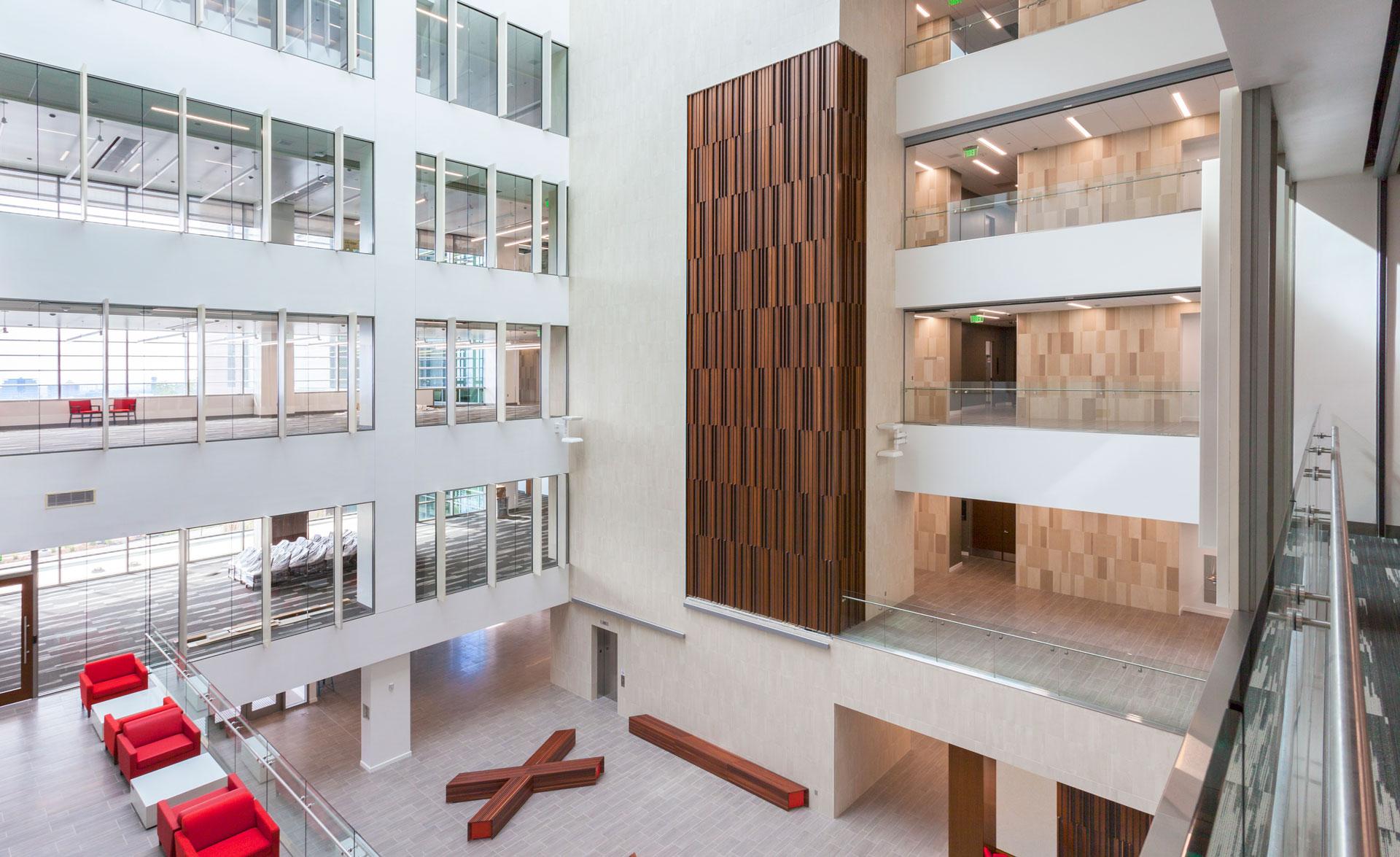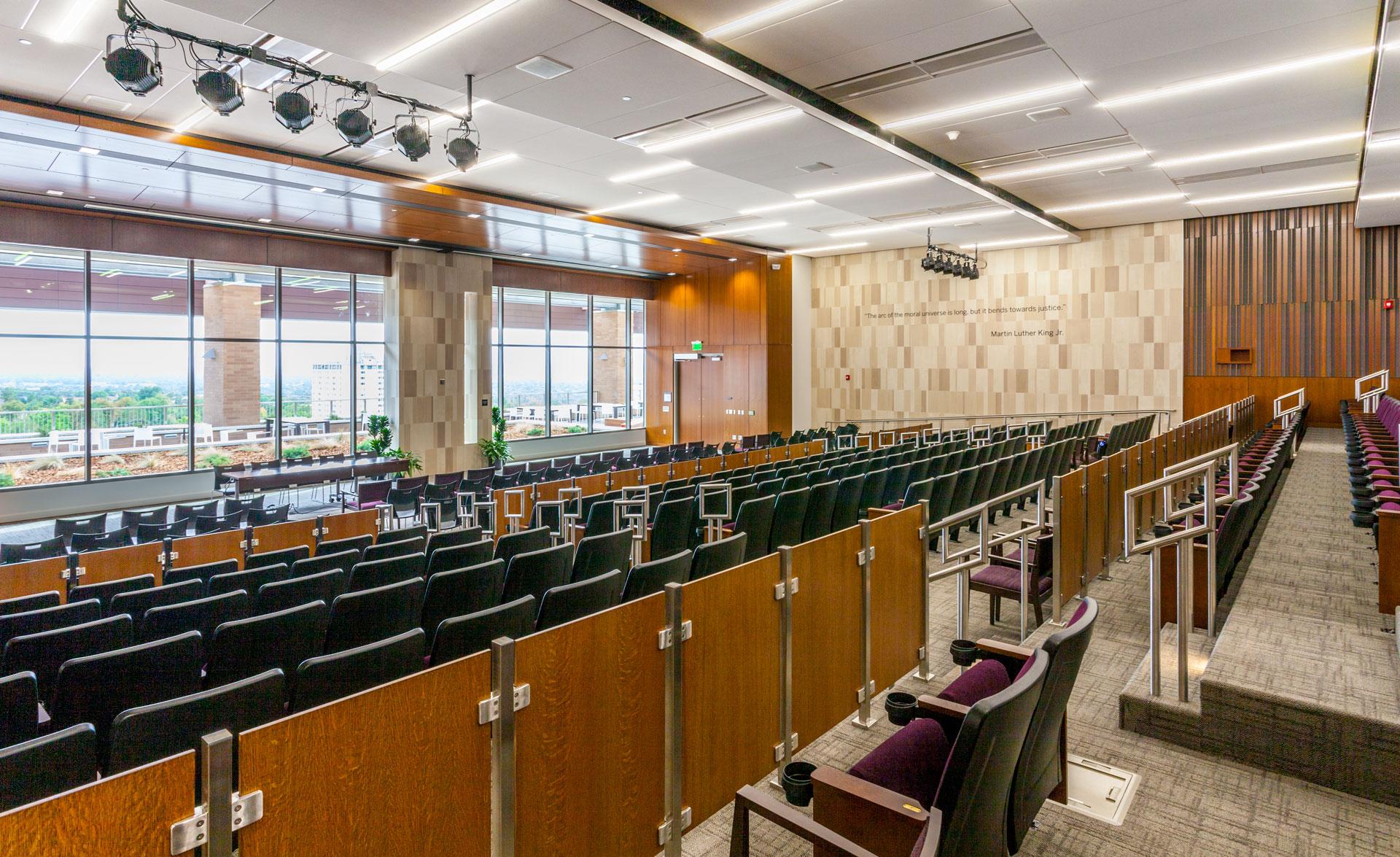 After 50 years in its original facility, the S.J. Quinney College of Law at the University of Utah has a new home, more than 50 percent larger than the original building. The six-story structure accommodates a projected student population of 450, providing classrooms, training courtrooms, administrative office space, common areas, research areas, individual & collaborative study space, dining, a student lounge, lockers and more.