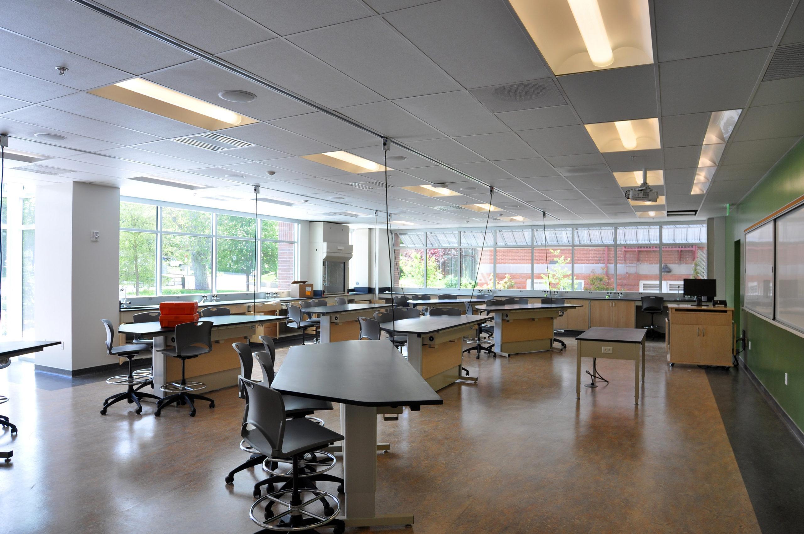 - DescriptionThe Meldrum Science Center at Westminster College is a new, four-story building for the Biology, Chemistry, Geology, and Physics departments of the College of Arts and Sciences. It has 14 integrated lab classrooms and interactive features, five research laboratories, including a food-science lab, faculty offices, and multiple shared and integrated learning environments. The building replaced a much smaller, outdated structure. The new building features a brick and zinc exterior, similar to adjacent buildings on the historic campus. A focal point is the central atrium which not only brings in light, but also enables the various floor levels to open up one to another.